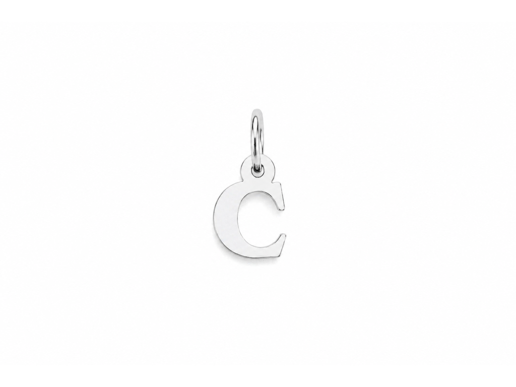 Elegantní přívěsek ve tvaru písmene „C“ ve stříbrném provedení je jemným a stylovým doplňkem pro každodenní nošení i speciální příležitosti.
