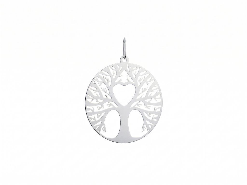 Stříbrný přívěsek strom života se srdcem v jádru – Symbol rodiny, síly a hluboké lásky