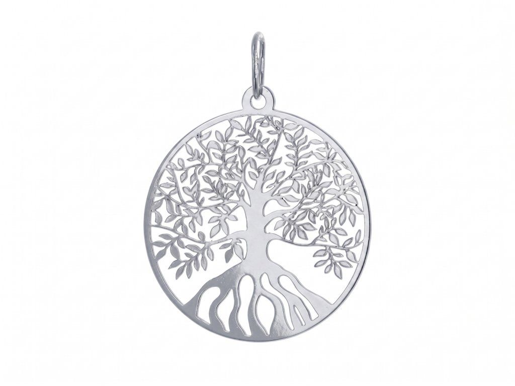 Jemný stříbrný přívěsek s precizně vyřezávaným motivem stromu života.