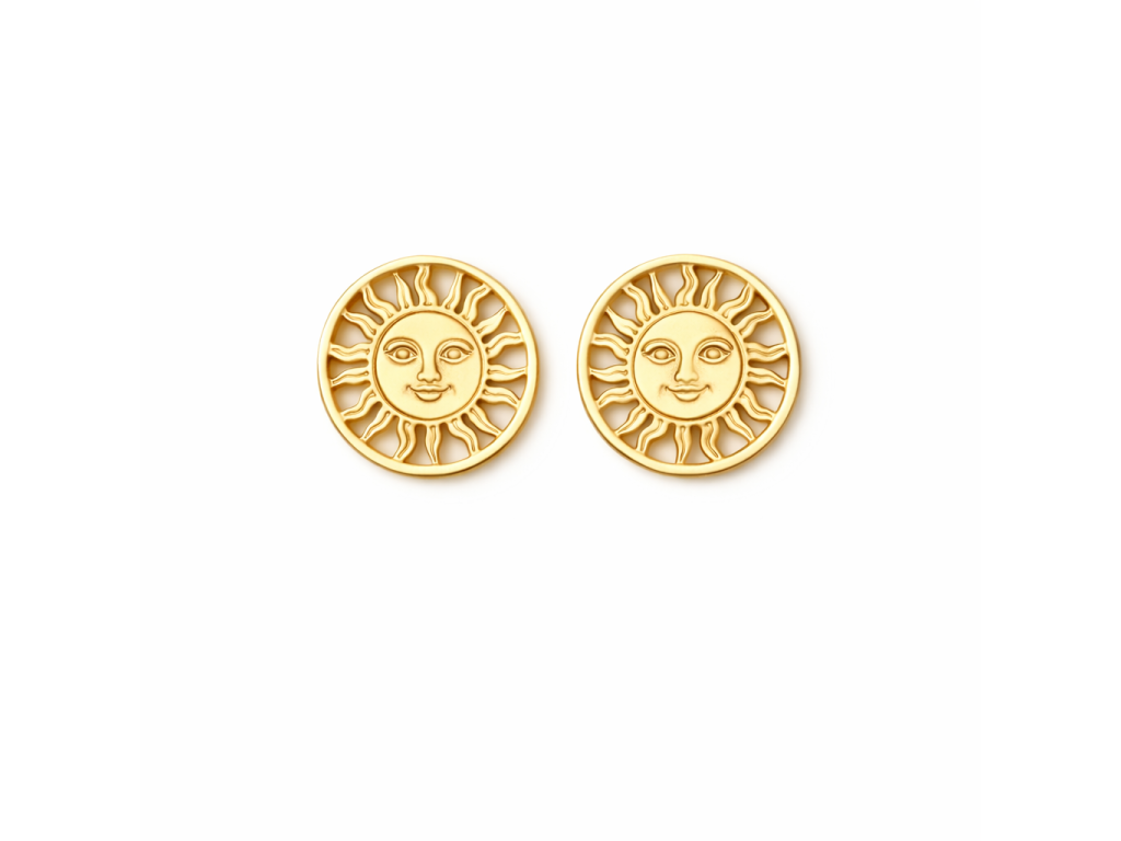 Originální náušnice s motivem slunce ve zlatém odstínu. Výrazný a zároveň elegantní doplněk, který rozzáří každý outfit.