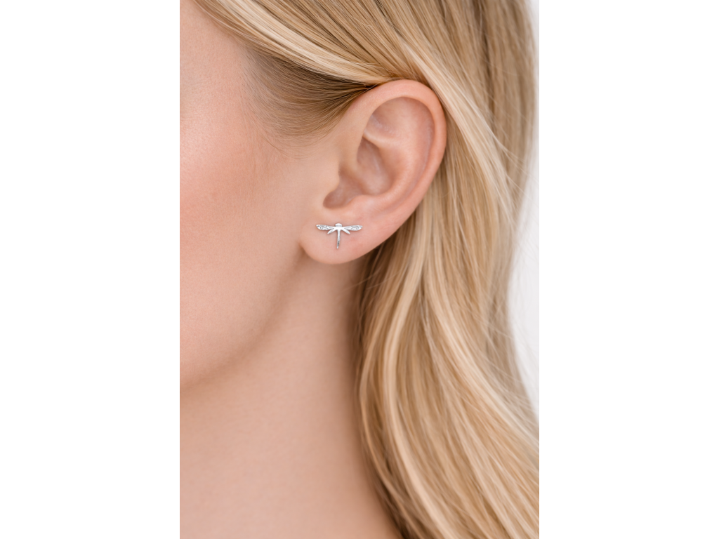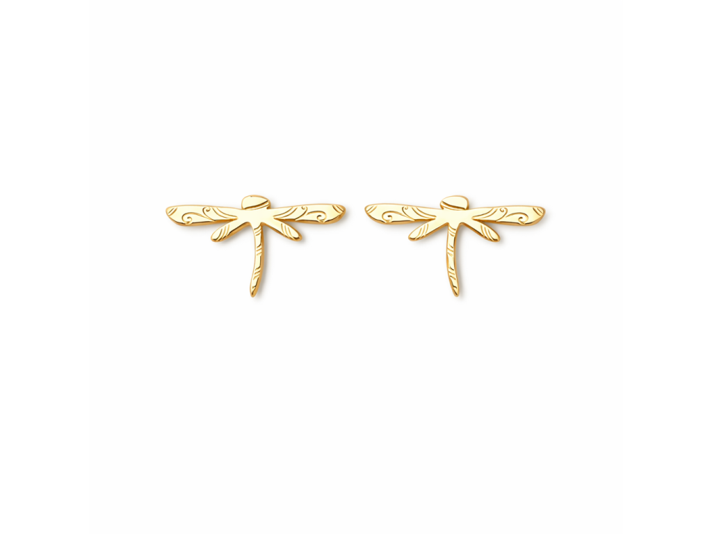 Tyto originální náušnice s motivem vážky zaujmou svým detailním zpracováním a lehkým, vzdušným designem. Jemně zdobená křídla s dekorativními liniemi dodávají šperku elegantní a zároveň přírodní charakter.