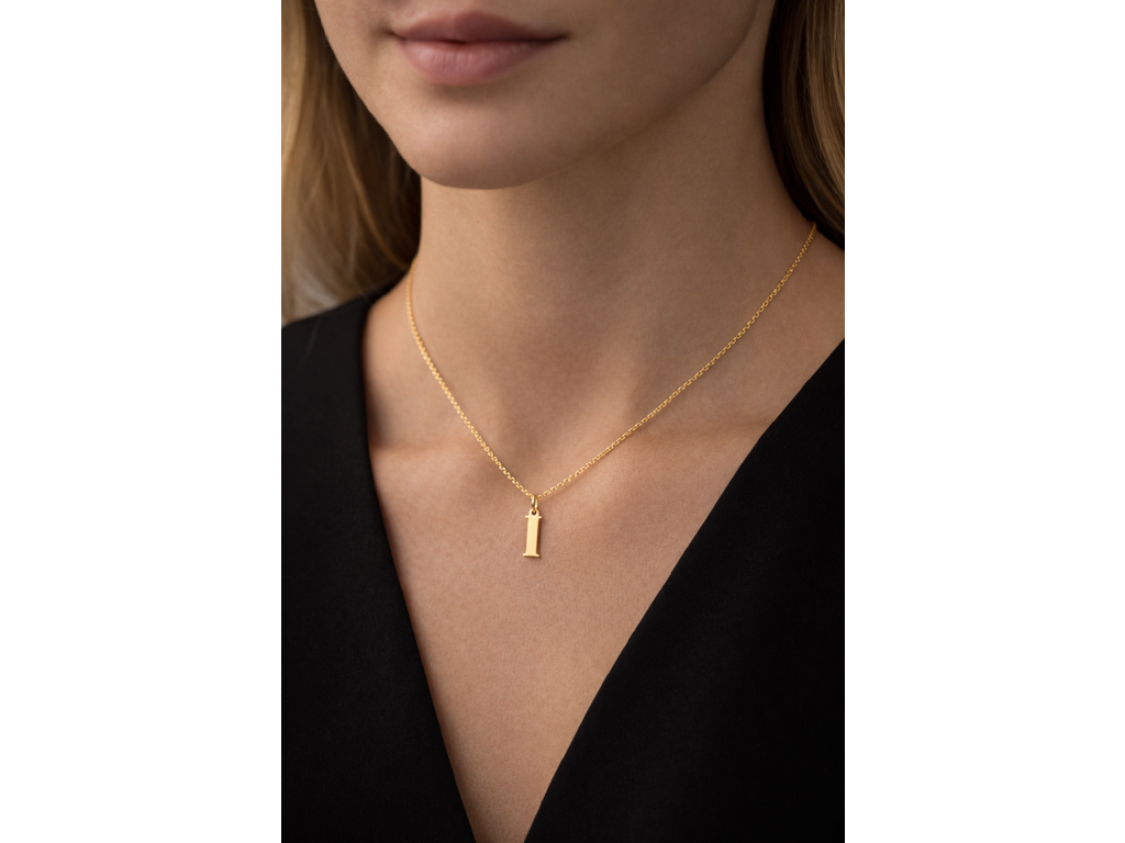 Zlatý přívěsek Písmeno "I" – lesklý Elegantní a minimalistický přívěsek ve tvaru písmene "I" vyrobený ze žlutého zlata s vysokým zrcadlovým leskem. Díky své lehkosti a nadčasovému patkovému designu je ideálním osobním šperkem pro každodenní nošení nebo jako jemný dárek k významné události.