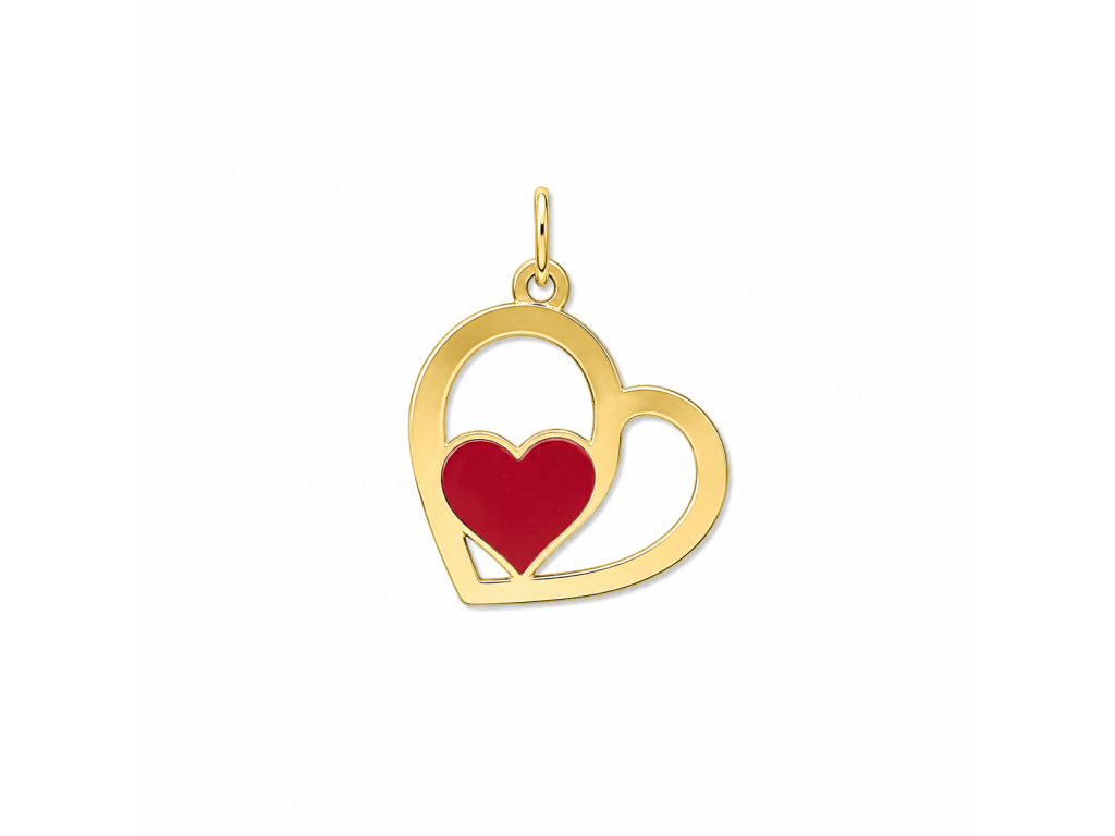 Zlatý přívěsek ve tvaru srdce s červeným detailem. Jemný a romantický šperk pro každodenní nošení.